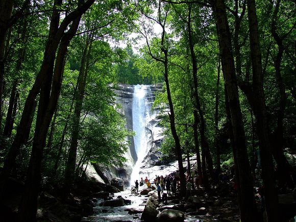 來到了瀑布前,峭壁水瀑一瀉而下,化為小溪在我們腳下潺潺流過,大有“峭壁瀑布聲不斷,行人頭上水氣寒”之勢。霧靈山的特點就是山上有水、清水潺潺。這是我們的生命之源,是天地和諧化成的精醇,是山峰與樹林相互孕育的瓊漿,帶著天地之靈氣,灑向自然與人間,為我們的自然與人類世代繁衍默默的奉獻。