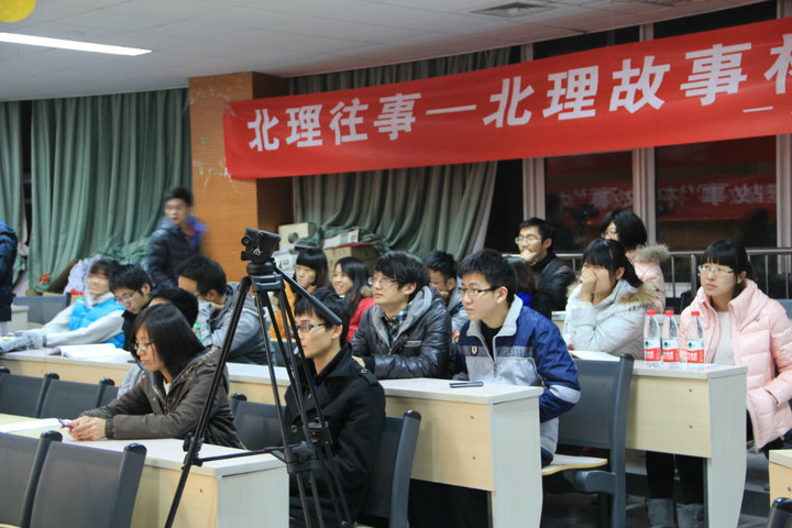 由北京理工大學(xué)學(xué)生記者團(tuán)主辦的“北理往事”系列活動(dòng)之“北理故事”征文大賽于2012年11月啟動(dòng),至12月7日?qǐng)A滿落幕,經(jīng)過(guò)層層篩選,16篇參賽作品成功晉級(jí)決賽。決賽于2012年12月7日19:00在良鄉(xiāng)理學(xué)樓207隆重舉行,由校黨委宣傳部退休教師周本相,藝術(shù)教育中心教師、旅法學(xué)者賈金莉,人文與社科學(xué)院資深教師、馬克思主義教研室教師張雷,黨委宣傳部新聞網(wǎng)編輯趙琳以及大學(xué)生記者團(tuán)指導(dǎo)教師楊揚(yáng)共同擔(dān)任決賽評(píng)委并為獲獎(jiǎng)選手頒獎(jiǎng)。