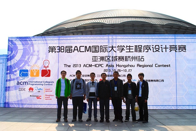 2013年10月27日ACM國際大學生程序設計競賽亞洲區杭州站現場決賽在浙江工業大學舉行,我校由計算機學院林永鋼教練帶隊,派出由計算機學院、軟件學院同學組成的兩支代表隊參賽,經過緊張激烈的比賽,北京理工大學在96所高校中脫穎而出,最終獲得一金一銀的好成績,學校排名第十一位。其中易毅、梁耀波、劉星辰組成的BIT_laser隊獲得金獎,傅天曉、蘇琛、陳翔組成的BIT_Is_a_Tree隊獲得銀獎。