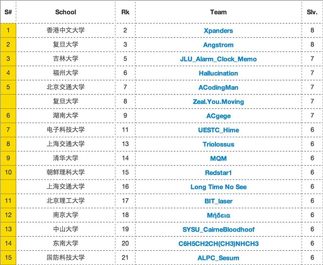經過網絡預賽篩選,本次亞洲區預選賽杭州站現場決賽共有來自全國96個高校的154支隊伍。由于這是今年的第二站比賽,香港中文大學、清華大學、上海交通大學、復旦大學以及蒙古國立大學、朝鮮理科大學等國內外諸多強校均派出多支隊伍參賽,本次現場決賽角逐異常激烈。