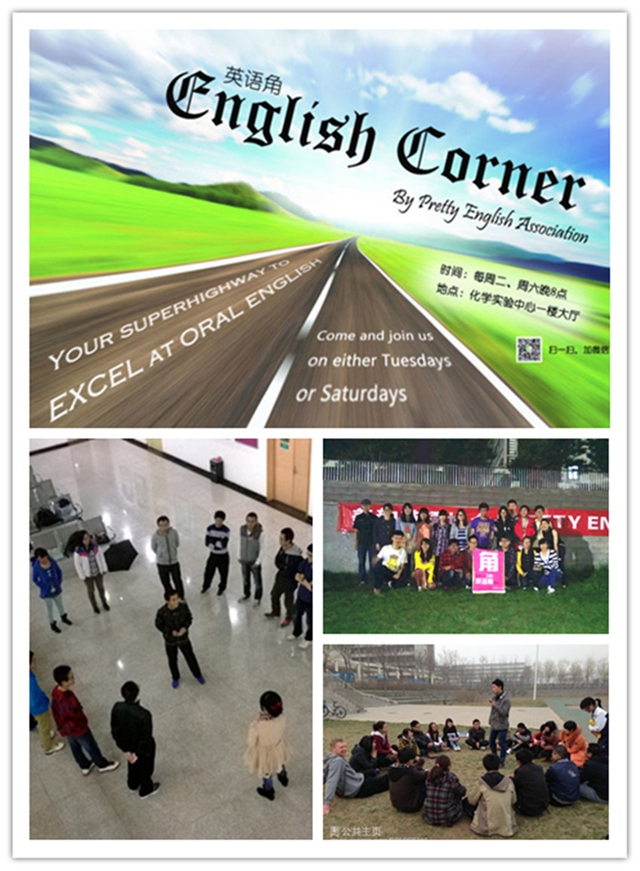 “English Corner”英語角活動為美韻英語協會的常規活動,每周舉辦一次。英語角為學生們提供了鍛煉口語與思維能力的平臺,還能啟發了同學們對當前時代熱點的思考。例如,2013年12月7日的英語角話題為“霧霾產生的原因以及改進天氣的措施”,參與的同學們討論熱烈,紛紛提出了自己的觀點。隨著討論的逐漸深入,話題也被推向工業化和城市化方面——工業化城市化對環境的影響以及是否需要減速工業化和城市化來減輕污染。大家紛紛提出對環境改善方面的建議與看法,相互補充。