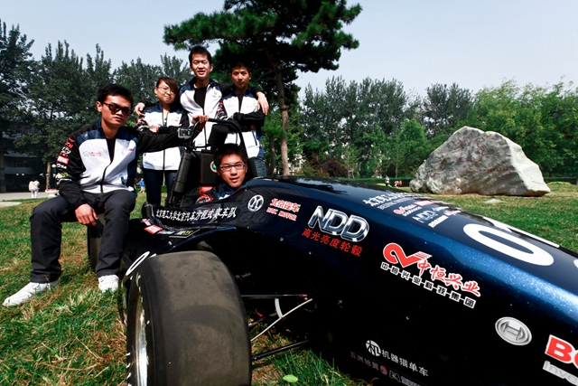 在缺少技術的情況下,隊員們不斷探索,通過翻譯國外技術論文、咨詢國際一流車隊、調研國內賽車行業等方式,積累了一定的設計資料,歷時6個月完成了賽車的設計、制造工作。由于沒有專業的賽車測試場地,車隊先后轉戰良鄉校區和通州卡丁車場進行賽車性能的調試,最終克服了重重困難,于10月初完成了賽車的測試及車手訓練工作。