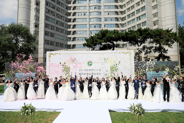 初夏之際,藍(lán)天白云,伴著清新典雅的音樂,在綠樹環(huán)繞的中心花園大草坪上,在教學(xué)樓環(huán)繞之中,一場校園婚禮正在舉行,在師生好...