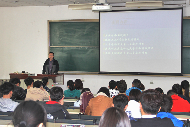 為了使同學們更好了解人文社會實踐國際化系列項目,3月18日下午2點,教務處在良鄉校區組織了2016年暑假人文社會實踐系列項目宣講活動,人文學院張雷老師主講。張老師首先介紹了人文社會實踐課程的要求和學分認定,之后分別介紹了美國社會實踐項目、德國工業4.0社會實踐項目、日本早稻田大學社會實踐項目、澳大利亞悉尼科技大學社會實踐項目和英國曼徹斯特大學社會實踐項目的要求、時間安排、實踐內容等。張雷老師是2015年赴美社會調研項目的帶隊老師,義務承擔了項目運行的組織與管理工作,在學生赴美調研學習期間給予全面的指導和熱情的幫助,為拓展人文社會實踐國際化系列項目做了大量工作。