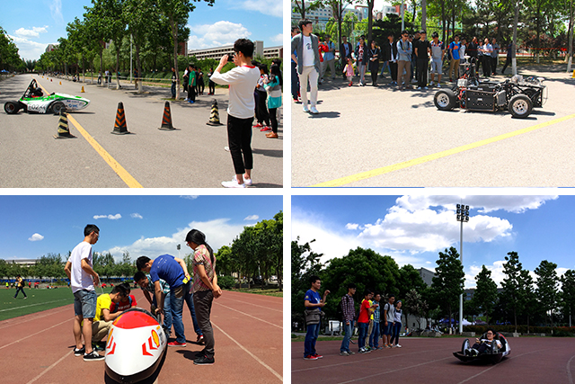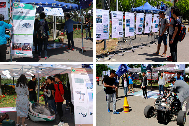 作為2016年“汽車科技文化節”的一個重要組成部分,學院兩校區學生科協與方程式賽車工作室、無人賽車隊、節能車俱樂部、智能車俱樂部、巴哈越野車隊、三維成圖空間等7個科技類創新團隊都精心準備了靜態展位。純電動方程式賽車、節能競技賽車、無人賽車、飛思卡爾智能車等……這些同學們自制的炫酷新奇的賽車也來到了良鄉,既定的不同時段里在各自的跑道上進行著動態表演,這個周末里昔日安靜的南校區變得熱鬧非凡。