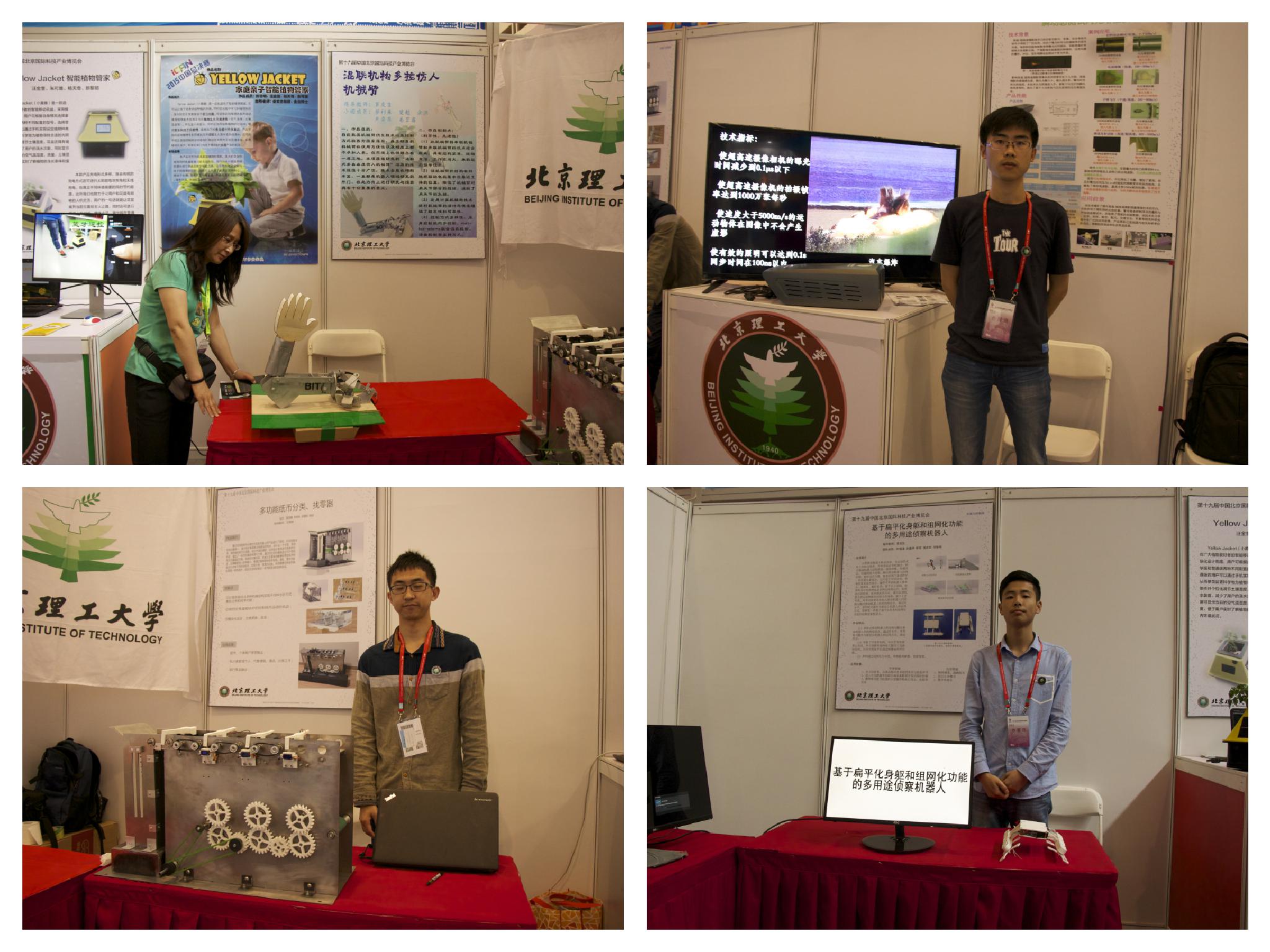 此次展覽總共持續了五天時間,期間同學們熱情飽滿。來參展的觀眾數量極大,同學熱心地為來觀者講解,也有不少商家前來詢問情況,尤其是“yellow jecket智能職務管家”項目憑借其精美性經濟性和實用性贏得了不少觀眾的駐足觀看,很多商家上前洽談了合作意向。能夠代表北京理工大學、代表北京地區高等院校參加本次展覽,是對機電學院相關指導教師長久以來堅持指導大學生科技創新項目、培養大學生創新能力成效的充分肯定,是對機電學院在組織開展和大力支持大學生科技創新項目相關工作的積極鼓勵。在此,也對長期以來給予學生科技創新以大力支持和眾多關懷的教務處、校團委等職能部門表示衷心感謝。