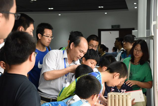 實驗室黃廣炎副主任通過高速攝影拍攝到的爆炸過程等視頻影像,向大家進一步展示爆炸過程。重點實驗室王芳副教授對導彈、彈頭、戰斗部等相關展出模型逐一進行了詳細的介紹。大家通過近距離觀察,親手觸摸模型和組件,進一步加深了對爆炸的感性認識。李增義老師向大家科普了如何利用煙花組件及其效果件完成北京奧運和上海世博會等大型活動焰火表演中的“大腳印”和“笑臉”的特效制作。同學們全神貫注地聽講,認真思考小器件凝聚的大智慧。此外,展室陳列的重大科技創新成果展板同樣吸引了眾人的目光,大家紛紛提問,專家一一進行講解,將深奧的科研成果以通俗易懂語言展現出來。
