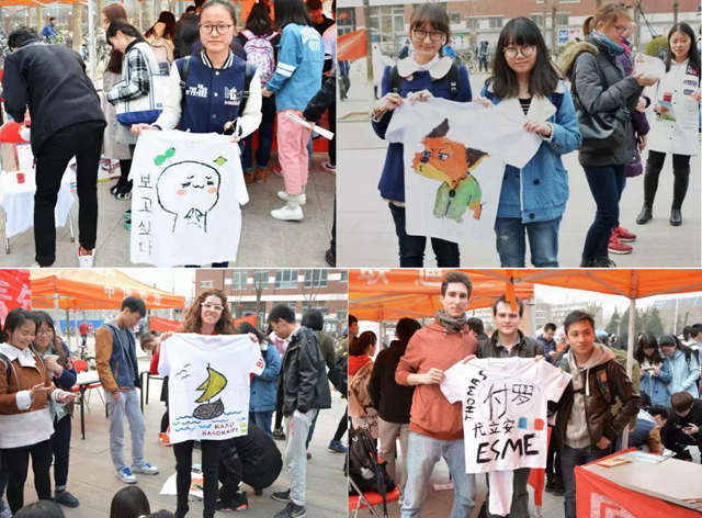 設(shè)計(jì)學(xué)院結(jié)合“讀懂你我,共享青春年華”主題開展“飛揚(yáng)青春,七彩T恤”活動(dòng)?;顒?dòng)于良鄉(xiāng)校區(qū)徐特立圖書館前開展,學(xué)院為前來參與活動(dòng)的學(xué)生精心準(zhǔn)備了畫筆、顏料、T恤,現(xiàn)場(chǎng)的大觸(繪畫能手)們紛紛展示佳作,旁邊不時(shí)傳來驚嘆的呼聲,許多有好奇心的同學(xué)也拿起了畫筆,在T恤上留下自己的原創(chuàng)作品。同時(shí),活動(dòng)吸引了學(xué)校留學(xué)生朋友前來參與,他們席地而坐,興致勃勃地畫著自己故鄉(xiāng)的風(fēng)景。參加活動(dòng)的每個(gè)同學(xué)畫完后都積極得向大家展示了自己的作品,活動(dòng)洋溢著自信向上的青春氣息。
