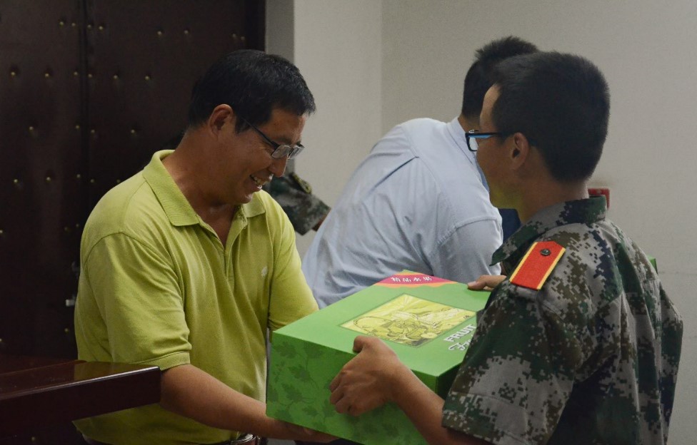 接下來,胡更開與其他院領導一起為同學們送上了中秋禮盒以及滿滿的祝福。院領導們親切地與同學們握手,詳細詢問軍訓期間的生活情況。小小的盒子里,不僅僅是月餅、水果這類節日禮物,更是傳遞著宇航學院對所有新生的祝福與關懷。