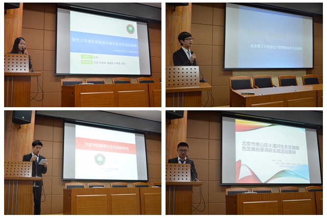 報告會上,實踐團匯報人依次以PPT或視頻的形式展示了暑期實踐的過程以及總結和反思。楊鴿所在的實踐團赴山西方山縣同時進行了支教活動和生態科考,她感嘆,短短的時間里,實踐團成員不僅意識到鄉村地區教育相對落后的問題,而且也培養了自己的責任意識;陶慧講述了實踐團在桂林進行的生態科考活動,他們走訪了當地的環保相關部門,經過本次實踐,每位成員都獲得了豐富的成果;馬煉杰同學所在的實踐團分別在臺南國立成功大學、臺北故宮和中正紀念堂進行實地調查與采訪記錄,這段跨越海峽的經歷,表達了他們對祖國統一的期盼;賀一興所在實踐團隊遠赴長白山進行生態科考活動,經過收集樣本、數據分析,為大家匯報了當地的濕地、土壤及水資源的開發與保護相關現狀,并提出了自己的建議;劉文聰實踐團隊選取了京津冀一體化的時事熱點,從教育、通信、交通、產業四個方面著手調查,為大家詳細匯報了實踐成果和感悟;王玨為大家講述了大學城發展建設對城市周邊發展的影響,他們團隊以良鄉大學城為例,從政治經濟文化等方面展開細致調查,每位成員都表達了自己的看法。