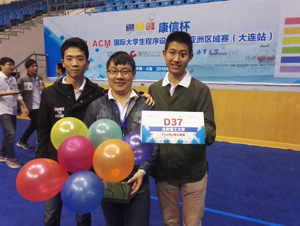 編輯:陳杰浩 審核:陳杰浩 閱讀次數(shù):2016年10月16日,第41屆ACM國際大學(xué)生程序設(shè)計(jì)競賽亞洲區(qū)域賽(簡稱ICPC/ACM)在遼寧大連拉開序幕。北京理工大學(xué)軟件學(xué)院派出兩支由2014級和2015級本科生組成的隊(duì)伍參加比賽。其中,由本科2014級姜天洋、蔡曉帆、顏蘇卿組成的“正在登錄”隊(duì)以及由本科2014級張帥,2015級鄭以慷、尹昊組成的“發(fā)兒弗萊”隊(duì)各斬獲一枚銀牌。