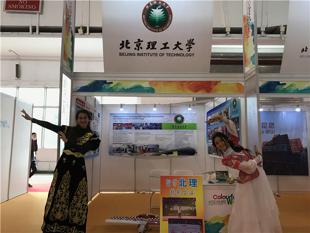 北京理工大學作為受邀高校組織并參與了國際教育文化展覽,由中國教師和留學生志愿者現場為觀眾們進行了國際教育文化成果展示和相關咨詢。近年來,我校的外國留學生規模再創新高,國際化氛圍日益加深,2016年外國留學生人數從五年前的500人增長到2000余名,學生國別也由52增加到127個,涵蓋了“一帶一路”沿線的歐洲、東南亞、中亞、東南非等國家,學校國際化水平高,氛圍濃厚,較好地完成了組委會交辦的國際文化展示任務。
