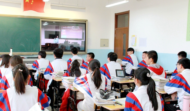 往常的主題普法活動僅是面向一個或兩個班級,此次北理工普法志愿團的普法活動還通過直播、轉播、面授的多種方式面向宏志中學的所有班級作為一堂思想政治班會開展。