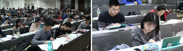 教室里容不下了,他們就在大廳,在走廊,撐起桌子,支起凳子,討論、記誦。只要有燈的地方,就有他們的身影,他們的勤奮刻苦互相照映,又像一盞盞明燈。