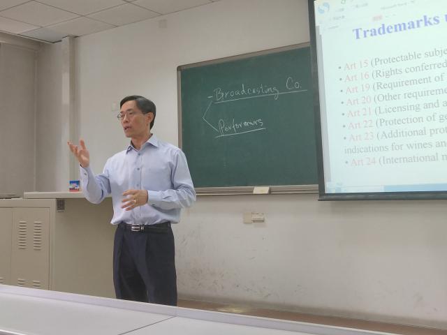 丁相朝此次到法學院進行一周的講學。他從全球視野介紹了中國的對外貿易發展,并詳細講授了從絲綢之路到一帶一路,從中國唐代到宋代,從英國光榮革命到中國偉大復興,世界貿易的歷史發展變化。丁相朝提出了一系列值得思考的問題,并與同學們進行互動。此次他將給同學們分析了SCM公司與施樂公司專利權糾紛,三星與蘋果的專利糾紛等知識產權糾紛案例,用大量數據講授了國際貿易和知識產權保護之間的關系,以及專利糾紛對國際貿易的影響。