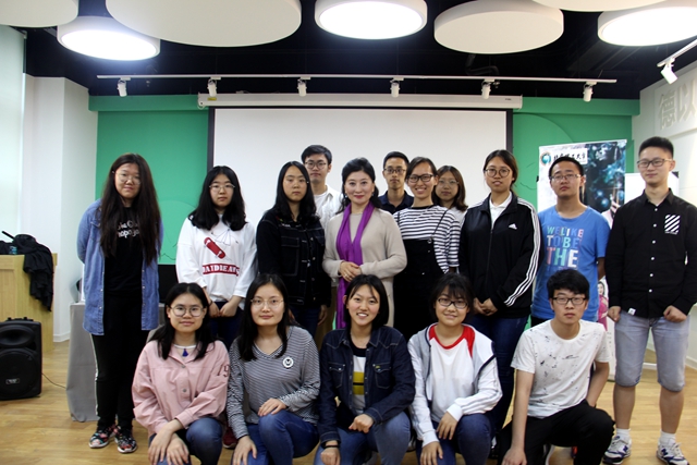 陳澄講述了淮劇的起源與發展,詳細介紹了南派、北派、東路、西路四個各具特色的淮劇流派。她言傳身教,用一段段經典的作品選段來表現淮劇藝術百花齊放的聲腔特點,時而高亢,時而悲涼。陳澄用自己對淮劇的傳承、改革和創新的事跡勉勵大家,偉大的藝術來源于實踐,傳統藝術既需要繼承老一輩藝術家們留下來的文化底蘊,也需要足夠的精力去不斷地嘗試與革新,并以淮劇《小鎮》為例,講述戲劇所折射出的人生哲理及其教育意義,強調戲劇文化在弘揚社會主義核心價值觀、傳播中國傳統文化、堅定文化自信等方面的重要意義。講座最后,陳澄為大家表演精彩的淮劇選段,并與學生合影留念。