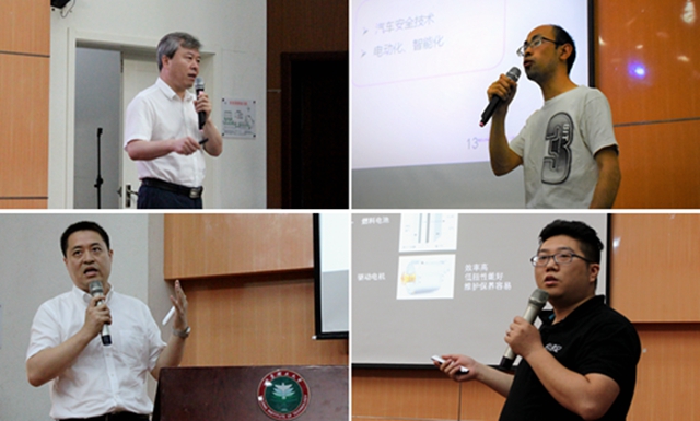 在“汽車科技與生活”的論壇中,張騫慧主要從需求、安全、發展方向幾個方面分析當今時代汽車發展的趨勢,讓學生們看到了更加廣闊的汽車應用空間。孫柏剛教授語言詼諧易懂,從內燃機的發展前景切入,提出氫能源與氫動力的話題,講述過程中用大量圖解、曲線、數據簡要說明了氫能源的巨大優勢,進而提出能夠用來盛裝其能源的氣缸及內燃機不可能被淘汰的結論。