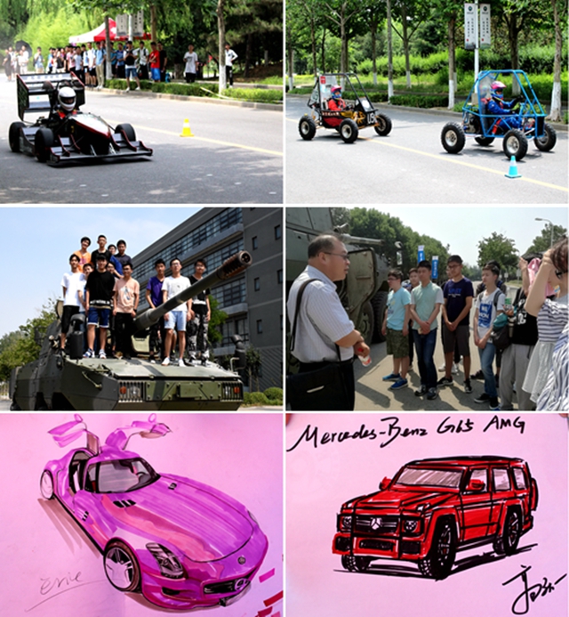 在靜態展示區域,驕陽也擋不住學生們的熱情,圖書館門前的模擬駕駛活動也吸引了大批對競速比賽有興趣的同學前來圍觀、試玩。在靈魂“車手“繪出你心中的車活動上,他們用手中的畫筆表達對車的熱愛和心中無限的想象力,留下了令人驚艷的作品。