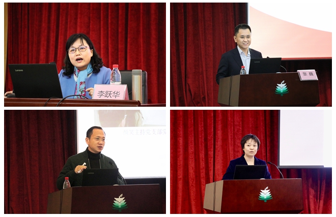 中央黨校機關(guān)黨委宣傳處處長李躍華,工信部直屬機關(guān)黨委統(tǒng)戰(zhàn)群工部部長、直屬機關(guān)團委書記張巍,校黨政辦公室副主任周波,學校紀委辦公室監(jiān)察處紀檢監(jiān)察員趙滿,分別以《深入學習貫徹習近平新時代中國特色社會主義思想 展現(xiàn)新時代新?lián)斝伦鳛椤贰秷允爻跣?,建設合格支部》《黨支部規(guī)范化建設與黨員發(fā)展》《全面從嚴治黨》為主題,深入剖析了十九大報告中提出的各項新理論、新論斷,要求黨支部書記堅定理想信念、強化責任擔當,引領(lǐng)學生黨員隊伍建設向更高層次邁進;闡述了深化“兩學一做”教育、落實“三會一課”制度的根本要求,鼓勵黨支部書記創(chuàng)新工作方式、提升個人政治素養(yǎng)、強化支部政治功能、推進黨支部規(guī)范化建設;梳理了從“治黨”到“從嚴治黨”再到“全面從嚴治黨”的發(fā)展脈絡,從多個角度對黨支部書記提出要求。