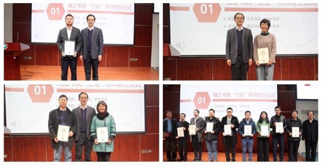 在“三全”導師聘任儀式上,與會人員先后為朋輩導師、學育導師、德育導師、學術導師、通識導師與校外導師六類導師頒發聘書。