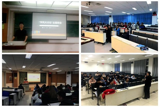 在開展“學風大討論”活動中,班主任通過召開主題班會引導同學們反思學習中存在的不良現象以及帶來的負面影響,自主形成《班級學風倡議書》,開展“良好學風我先行”活動,各班按照倡議內容發動同學們摒棄不良學風陋習,自覺養成積極的學習習慣。為喚起學生的共鳴和反思,17821703班自導自演拍攝了4期“校園不良學風行為那些事兒”微視頻,將上課遲到、吃東西、玩手機、考試作弊等負面現象以風趣幽默又引人深思的形式展現出來,當學生以傍觀者的視角重新審視這些行為時更能反思和意識到其危害性。