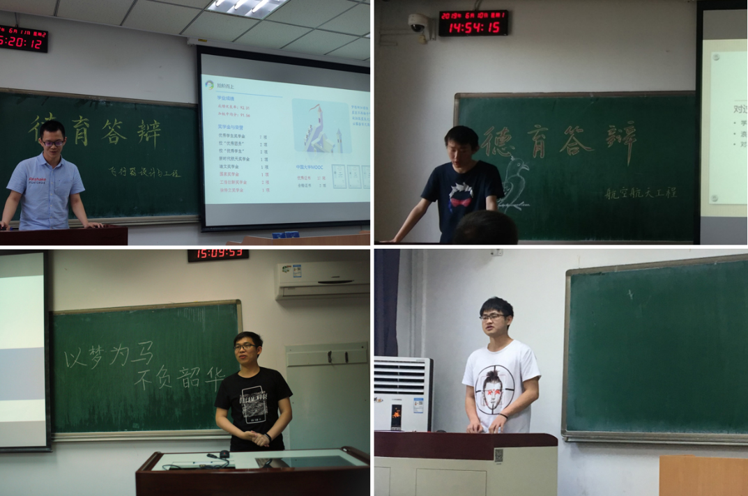 宇航學院2015級本科生德育答辯圍繞“我的祖國我奮斗”主題教育活動展開,各班結合班級特色,分別以“青春無畏,逐夢揚威”“追求卓越,志在藍天”“青春之名,夢想前行”“大學 青春 理想”等作為答辯交流會的主題。在德育答辯的過程中,同學們不僅對過去進行了總結和反思,而且對未來進行了規劃和展望,分享了各自的青春理想,堅定了航天報國的決心。參與德育答辯的老師對同學們的答辯進行了指導與點評,對同學們四年大學生活中取得的成績給予了肯定,同時祝愿同學們前程似錦。勉勵同學們一定要牢記習近平總書記對青年學生的囑托,樹立“四個正確認識”,將報效祖國理想和個人價值追求統一起來,將理想信念踐行在服務國家建設的使命擔當之中,成為德智體美勞全面發展的社會主義建設者和接班人。