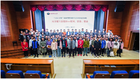 講座最后,張天宇和演出專家與同學們親切合影留念,寄語同學們繼承革命傳統和優良作風,認真學習,勇于實踐,為祖國奉獻芳華。同學們也用自己的方式表達了對專家團隊的歡迎與感謝,在“專家我想對您說”環節,課程主持教師許晶選讀了三位同學感言,來自精工書院的宋宸、李汶珈和求是書院的孟里這樣說:“我想對專家說敬佩您如此精湛的水準和感激您能夠精心準備講座。藝術的力量使人強大,通過第三講堅定了我對藝術的追求,對國家的熱愛,對使命的承擔。我想對專家說謝謝您!”