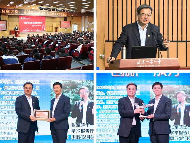 編輯:陳琪 審核:范文輝 閱讀次數:為進一步推進學?!半p一流”建設,增強學校與優秀生源基地中學的合作互信,促進學校與中學聯合培養創新人才的平臺建設,提升一流生源質量,12月27日下午,“名家講堂”系列學科講座活動走進北京一零一中,北京理工大學校長張軍院士在學術報告廳為高二師生進行了一場題為《創新?成才》的報告會,校長助理汪本聰及相關部門和學院的師生參加活動,北京一零一中校長陸云泉出席活動并主持報告會。