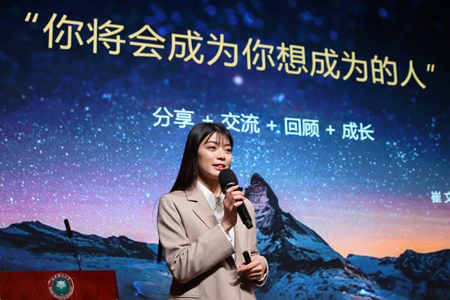 優(yōu)秀研究生代表崔文向大家分享了她干貨滿滿的奮斗歷程。崔文結(jié)合實(shí)際案例、個(gè)人收獲,從專業(yè)實(shí)踐、競賽參與、學(xué)習(xí)心態(tài)等角度與同學(xué)們進(jìn)行了分享,同學(xué)們受益匪淺。