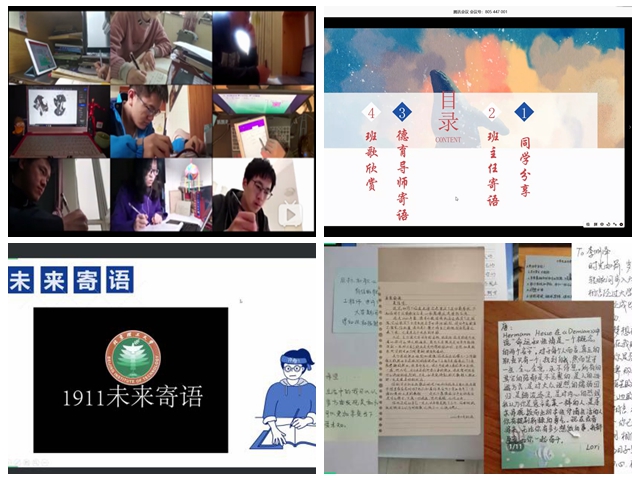 “群星飄蕩,是夢想的遠方,是信念,凝聚的他鄉(xiāng)?!本?921班同學“以樂伴夢”,原創(chuàng)了德育開題主題班歌《盡頭的歌謠》。各班同學還充分利用網(wǎng)絡平臺,在“以筆繪夢”“以心織夢”“以聲聆夢”等環(huán)節(jié)中暢談人生理想。同學們通過制作與親友合作書寫的信箋、“給未來的自己”主題視頻等作品,對話四年后的自己,樹立遠大志向。各班同學還精心策劃了“通關(guān)文牒”“漂流瓶”“時間膠囊”等多種兼具教育性、趣味性和互動性的線下環(huán)節(jié),待返校后開展。