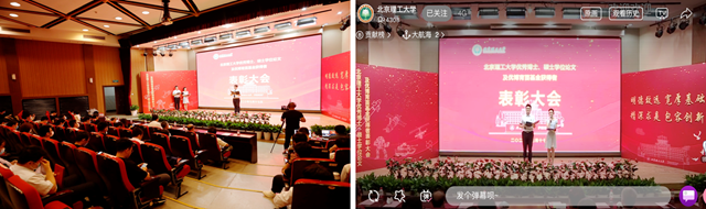 表彰會現場有在校的24名優秀博士、碩士學位論文獲得者、12名優博育苗基金獲得者,機械與運載學部副主任左正興、信息與電子學部副主任賈云得、理學與材料學部副主任張向東、人文與社會科學學部主任李金林,以及學院代表、導師代表、學生代表、研究生院領導等80余人參加。上萬名師生、考生家長通過我校官方B站觀看了直播活動。