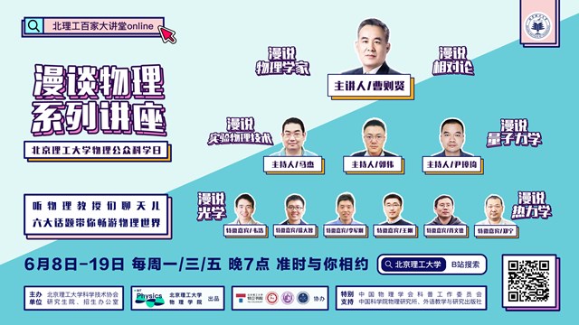 歷時三個月,由北京理工大學科學技術協會、研究生院、招生辦公室、團委等主辦,物理學院承辦的2020年北京理工大學物理公眾科學日順利收官?;顒硬捎昧恕熬€上開展,云端參與”的形式,設置了3大板塊6個欄目:大咖講堂、每周一哥、物理生活分享、趣味物理實驗、愛生活愛物理、物理?。從4月開始各版塊欄目陸續上線,截至7月底,全網共發布新媒體推送26篇、視頻網站動態57條、視頻作品32部,優質科普視頻作品持續上傳中……共開展了17場網絡直播,得到了人民網、光明網、騰訊新聞、新浪新聞、微博公開課等媒體的同步直播,活動累計參與人次突破200萬。