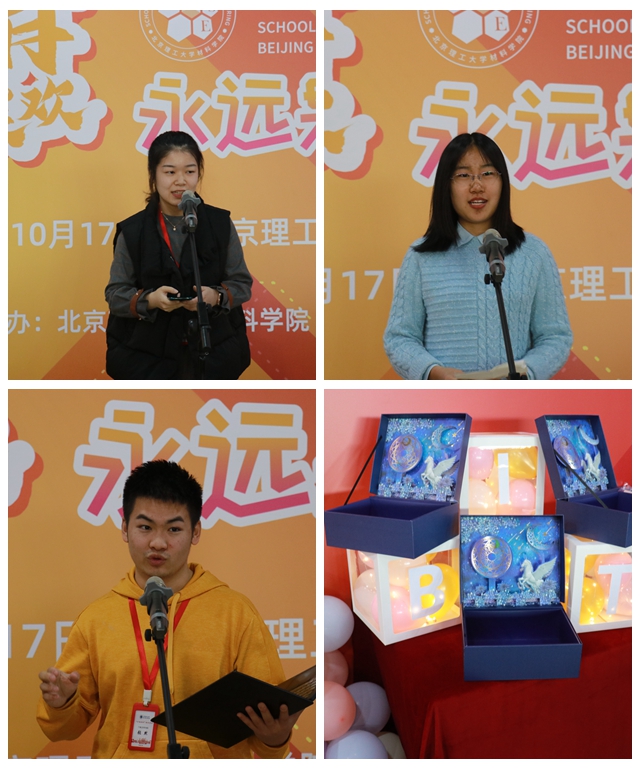 學(xué)院通過破冰游戲——“團(tuán)隊賽歌”幫助同學(xué)們盡快熟悉和活躍起來,金海波為獲勝同學(xué)頒獎。學(xué)院邀請在場同學(xué)們在信紙上寫下大學(xué)想要實現(xiàn)的心愿,大家一起做出 “與2023年之約”,約定3年之后共同開啟信封,期待看到自己的成長和變化。學(xué)院為每位同學(xué)贈送定制紀(jì)念U盤,希望同學(xué)們銘記“北理工材料學(xué)院是你的家”!
