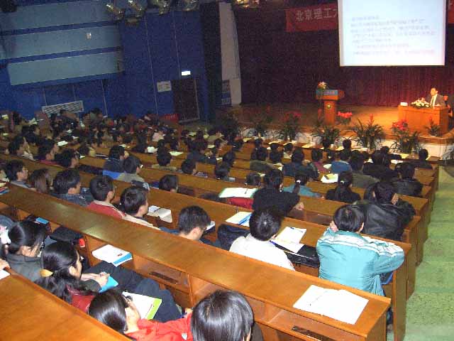 呂院長宣布論壇正式啟動后,由中國工程學院和中國科學院的王越院士作了首場報告,就“中國發展與大學任務討論”這一話題作了長達三個小時之久的精彩報告。王越院士在報告中指出:在“科教興國”方針指導下,大學承擔著艱巨長期持續發展的任務,個人發展離不開社會大環境的影響,而“文化”則是社會的綜合和核心表征,中國人民理應在世界文化發展中多做一點貢獻。王越院士以長者的身份用嚴肅而又不失幽默的語調談到了對當代大學生的希望和忠告,告誡新時期的大學生應該做到知彼知己,百戰不殆,把握機遇迎接挑戰,勇敢的去創新。