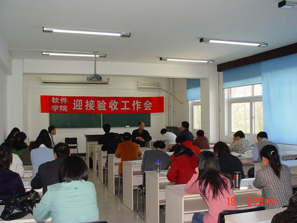 為迎接高教司對全國35所示范性軟件學(xué)院開展的驗收評估工作,2006年4月19日下午2:00,軟件學(xué)院召集全院教工30余人召開迎接驗收第二次工作會。