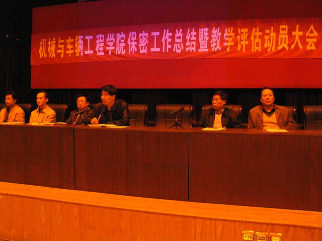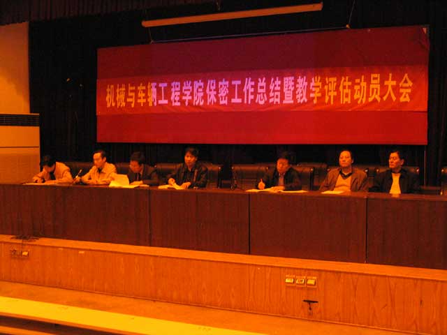 2006年4月26日,機械與車輛工程學院在七號教學樓一層報告廳召開了“機械與車輛工程學院保密工作總結暨本科教學工作水平評估動員會”。機械與車輛工程學院院長項昌樂、副院長張英、副院長左正興、副院長徐春廣、副院長王文清、副院長丁洪生、副書記、副院長郝洪濤及全院教職工參加了大會。會議由副書記、副院長郝洪濤主持。會議對學院開展武器裝備研制一級保密資格認證以來的保密工作進行總結與表彰,并就形成長效機制下的保密工作進行了新的部署與安排。會議傳達了學校、學院迎接本科教學評估的精神與重點內容,并對本科教學評估進行了部署與動員。會議通報了學院2006年度總體工作計劃及重點工作內容。