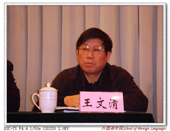 外國語學院院長吳樹敬,黨委書記王文清,副院長李京廉、譚利群、林彤,吳文君以及學院各教研室老師近100人參加了此次研討會。