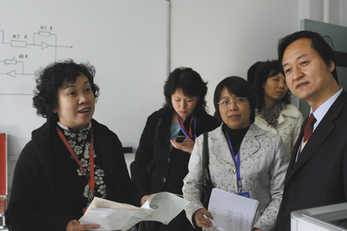 專家組成員、國家教學名師、武漢理工大學教務處處長劉泉聽完兩節課后,又走訪了信息科學與技術學院,就本科專業設置、教學監控制度、學生實習情況與教師代表進行了交流,并提出了一些指導意見。下午,她又考察了電工電子教學實驗中心、工程訓練中心、計算機實驗教學中心,并對學生實踐能力培養進行了詳細詢問。