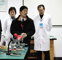 專家羅正祥、袁軍堂、高占先在物理實驗中心測試學生物理實驗技能