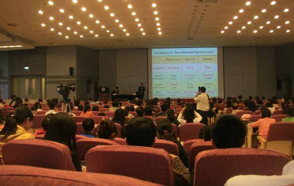 本次會(huì)議恰值中國(guó)分子光譜會(huì)議走過三十年的歷程。來(lái)自國(guó)內(nèi)三十多家高校和科研單位的300多位代表參加了會(huì)議。這是我國(guó)在分子光譜學(xué)術(shù)領(lǐng)域?qū)哟巫罡摺W(xué)術(shù)信息容量最大、參加人數(shù)最多的一次盛會(huì)。田中群院士、李燦院士、張希院士參加了本次會(huì)議。參加會(huì)議的還有一大批中國(guó)光譜學(xué)界的老專家、國(guó)外專家和國(guó)內(nèi)知名專家學(xué)者。我校作為承辦單位之一,承擔(dān)了會(huì)議的籌備工作。