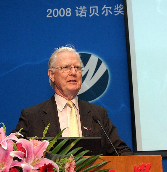詹姆斯·莫里斯爵士的報告題為《道德風險與金融危機(Moral Hazard and the Financial Crisis)》。他首先回顧了歷史上的金融危機對人們生活帶來的影響,接著系統分析了當前金融危機的形式,詳細講述了道德風險和金融危機的關系,并結合中國經濟發展的模式,就如何應對當前的金融危機提出了一些建議。