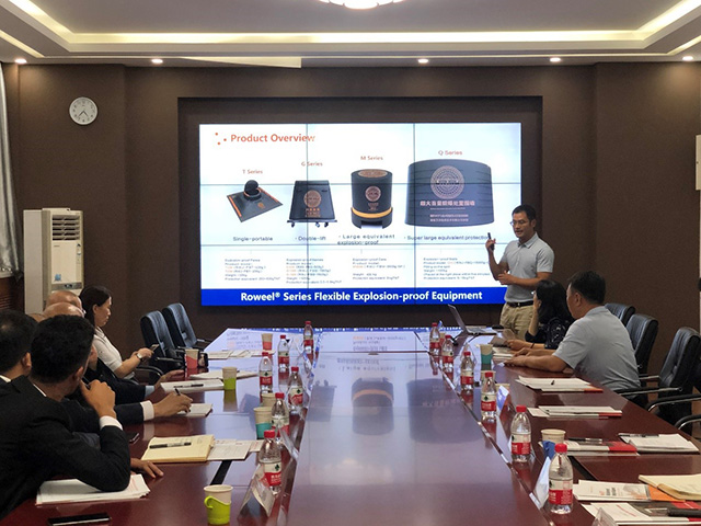 機電學院院長陳鵬萬介紹了爆炸科學與技術國家重點實驗室的概況,以及實驗室近幾年開展國際合作的情況。爆炸科學與技術國家重點實驗室副主任黃廣炎介紹了實驗室在爆炸安全與防護領域的科技成果,并重點介紹了柔性復合防爆技術和裝備在阿拉伯國家轉化應用的情況,并就中國和阿拉伯在防爆安全國際標準和聯合實驗室的建設合作提出了初步方案。