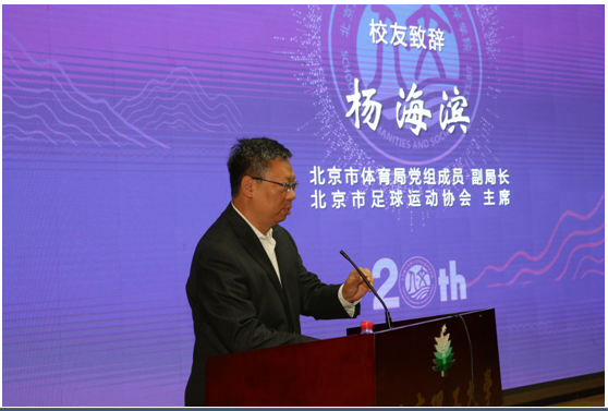 楊海濱代表校友發(fā)言,他感謝母校和學(xué)院的培養(yǎng)、表態(tài)要作為志愿者為母校和學(xué)院服務(wù),并祝福母校、學(xué)院和老師、校友們們永遠(yuǎn)年輕,他的發(fā)言表達(dá)了全體人文校友的心聲。