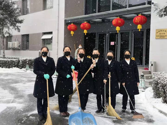 “媽媽,我今年不能回去陪您過年了,現在疫情肆虐,單位需要留人值守。”這是延園招待所留守在一線的姑娘們這幾天和家里說的最多的一句話。延園招待所作為此次學校防疫工作的臨時隔離區,事發突然,責任重大,已離京的員工又不能返京,這15名一線的員工勇往直前,毅然堅守在工作崗位上。