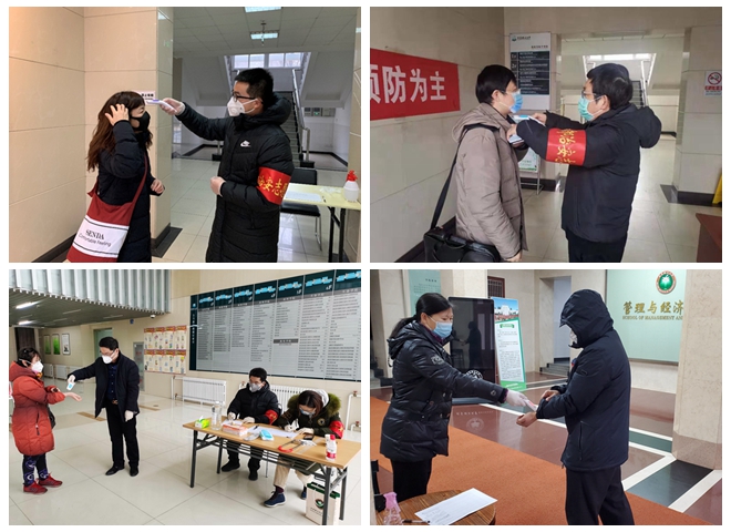 第一陣地,嚴守紀律筑牢防線。中關村校區5號教學樓涵蓋材料學院、生命學院、化學與化工學院、機電學院、物理學院等多個單位的辦公及實驗空間,進出人員身份相對復雜,材料學院按照值守要求,結合實際情況,明確要求值守人員提前10分鐘到崗進行工作培訓,同時安排每班3人進行輪換,在保證值守人員自身安全的前提下,確保無縫銜接。管理與經濟學院作為主樓值守責任單位,在及時通報全院教師的基礎上,還積極與同在主樓的計劃財務部充分溝通,并在主樓東門口設置值守提示牌,嚴控非本樓人員進出,對于體溫超過37.3°C人員,將督促其前往校醫院進行篩查。資產與實驗室管理處第一時間與計劃財務部招標采購中心溝通,認真落實逸夫樓南門管控要求,采取“閉樓值守、電話預約”的方式,對逸夫樓(南門)實行封樓管理,在逸夫樓南門大廳設置文件中轉箱,定時接收線下業務材料,并通過信息化手段,提高線上業務處理能力,在“防控第一”的前提下,確保各項工作的有序開展。