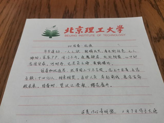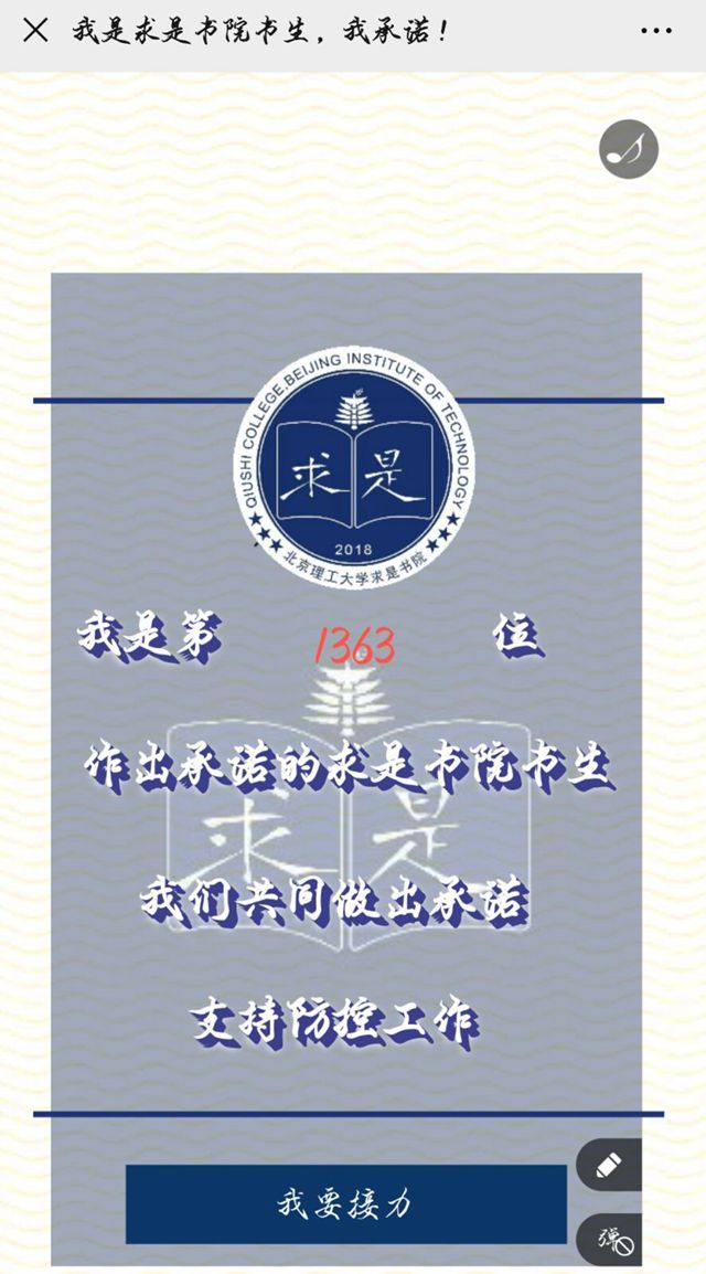 抗擊疫情,北理工求是書生從我做起,行動起來,吹響了“青春集結號”,做好科學防護,加強思想建設,以青春的時代擔當,為打贏疫情防控阻擊戰做出自己的一份貢獻。