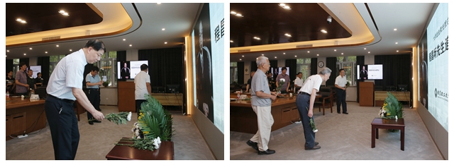 立秋后的北理,微風(fēng)吹露、陽(yáng)光和煦。下午2點(diǎn)整,追思會(huì)正式開(kāi)始。全體與會(huì)者向程昌圻先生遺像行禮、獻(xiàn)花,追思會(huì)現(xiàn)場(chǎng)肅穆寧?kù)o。伴隨平緩的樂(lè)曲,屏幕上徐徐滑過(guò)的張張珍貴照片,帶領(lǐng)大家回顧了程昌圻先生卓有成就的一生,先生音容笑貌仿佛猶在、昔日風(fēng)采恰似昨天,一幕幕、一幅幅珍貴影像令人為之動(dòng)容。