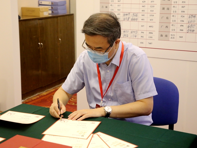 張軍在招生錄取現場親自為已錄取省份部分優秀學子的錄取通知書簽名,歡迎和激勵廣大胸懷壯志的優秀學子求學北理工。