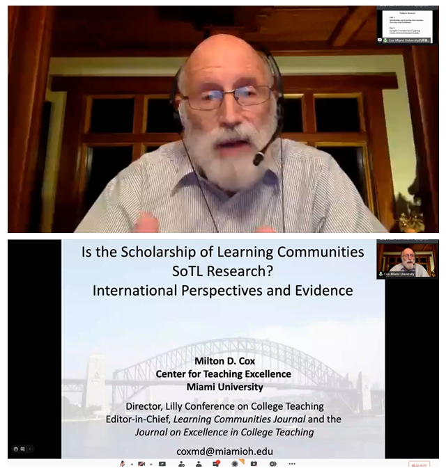 Milton Cox教授作了《學(xué)習(xí)社群的研究就是教與學(xué)學(xué)術(shù)研究嗎?——國(guó)際視野與證據(jù)》的大會(huì)報(bào)告。他認(rèn)為,有三種相互關(guān)聯(lián)的學(xué)術(shù)研究:教與學(xué)的學(xué)術(shù)、專業(yè)發(fā)展的學(xué)術(shù)和學(xué)習(xí)社群的學(xué)術(shù)。學(xué)習(xí)社群的研究是高等教育的一個(gè)重要學(xué)術(shù)領(lǐng)域,但并非所有的學(xué)習(xí)社群研究都屬于教與學(xué)學(xué)術(shù)的范疇。