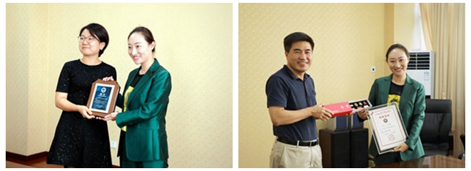 李振鍵為王藝潼校友頒發(fā)捐贈(zèng)證書(shū),并代表學(xué)校贈(zèng)送紀(jì)念品。王一飛為王藝潼校友頒發(fā)明德書(shū)院“校外導(dǎo)師”聘任證書(shū)。